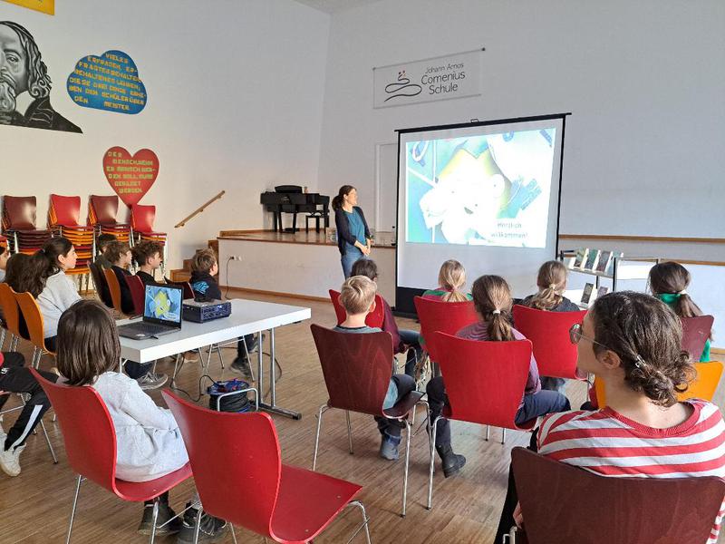 Am 27.11.2025 besuchte die Autorin Katja Frixe die Stadtbücherei in Niederzwehren. Katja Frixe stellte ihre Bücher vor und las einige Kapitel aus Ihrem Buch "Ich bin (d)ein Buch, pack mich aus!" vor. Anschließend konnte die Klasse 3c viele Fragen stellen und jedes Kind nahm ein Autogramm mit nach Hause mit.